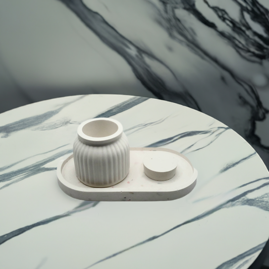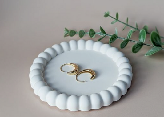 Discover an array of meticulously crafted handmade items, ranging from candle jars to trinket trays, coasters, oval trays, arch striped trays, and beyond. Each piece is lovingly made using eco-friendly materials such as Jesmonite or Plaster, ensuring not only exquisite craftsmanship but also a commitment to sustainability.
